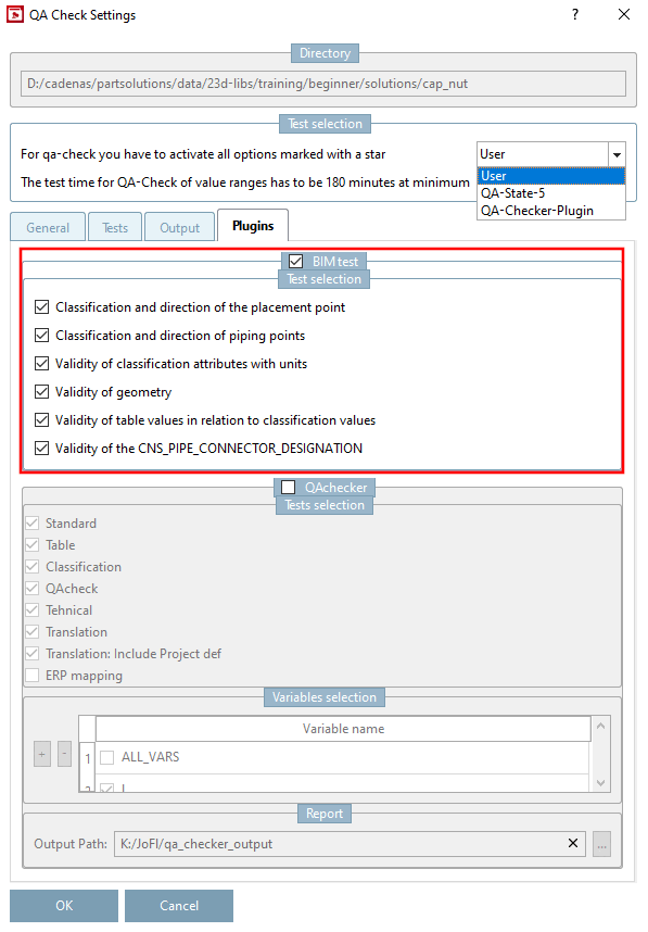 The following points must be set on the General tab page, the rest can remain deactivated for the pure BIM check.