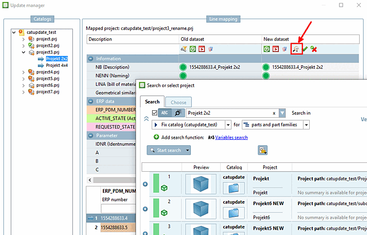 Mapping was possible for project3, although the project name has changed. You can see the name of the old project in the index tree and the name of the new project under Line mapping -> Assigned project.