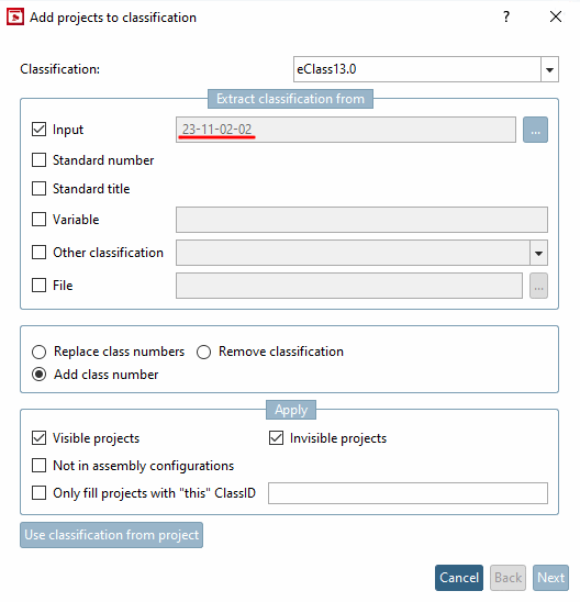 Together with Other classification on the first dialog page, this option allows you to transfer existing information from other classes. It is only active if Other classification [Other classification] has also been activated.