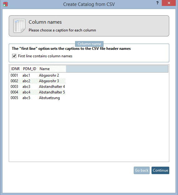 Define whether column names are stored in the first line of the CSV file.
