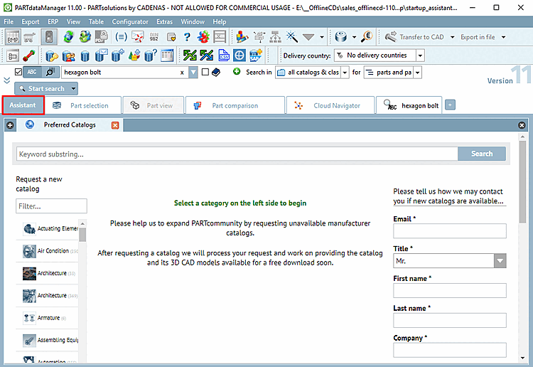 button, the corresponding website is displayed in the Assistant docking window, where you can request your desired catalog with specific details.