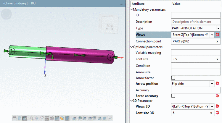 Part annotations do not have any text. For each single part of an assembly the so-called position number is displayed.