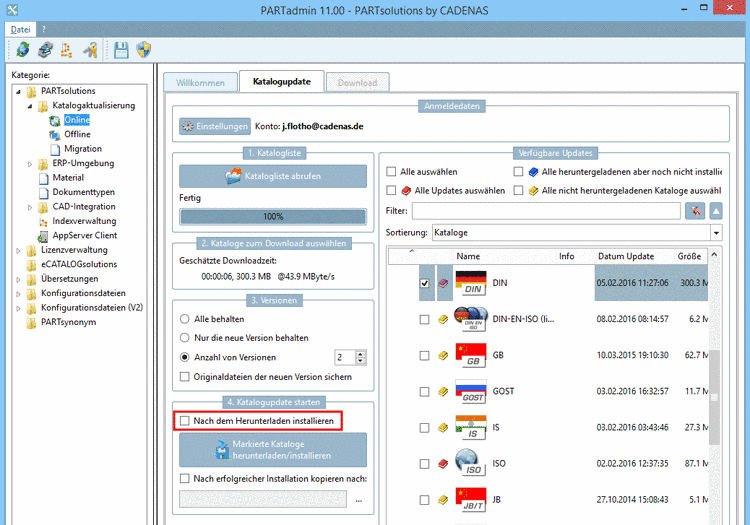 Downloaded catalogs remain in the "temp" directory, which has been defined under (tabbed page Welcome -> -> PARTupdate assistant -> Temporary directory).