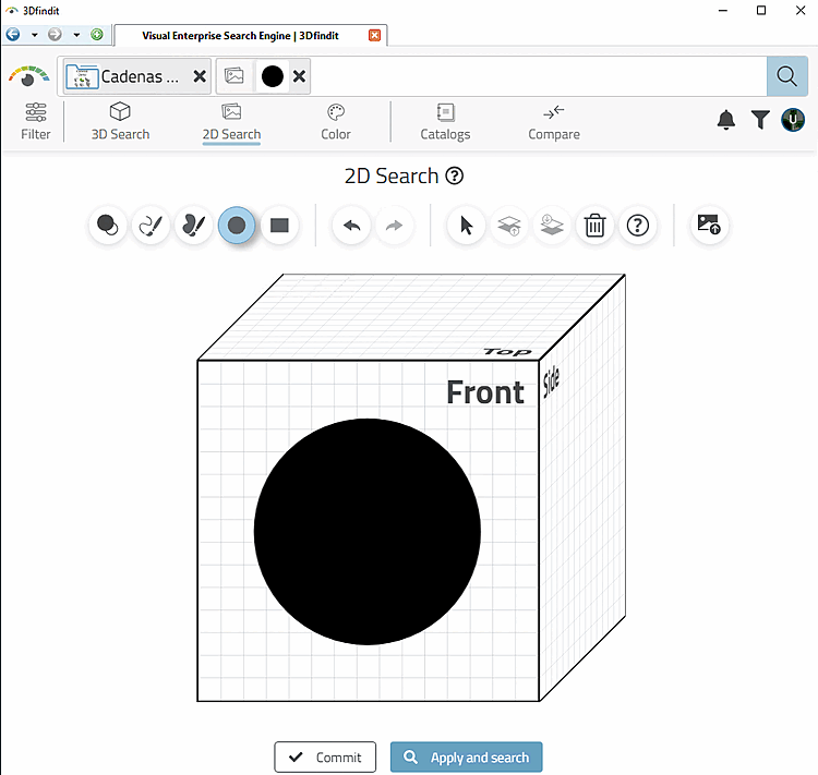 -> A search for a flange (circle) was carried out using a 2D sketch search [2D Sketch search].