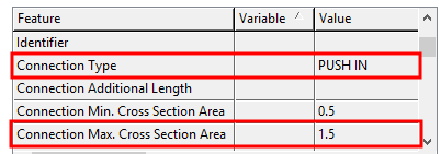 Scroll through the list of characteristics and enter the corresponding values for the characteristics connection type, stripping length and conductor connection cross-section, single-wire max. rated connection, as shown in the data sheet.