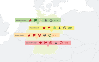 The CADENAS Smart Sales tool sorts through the CAD models downloads of your Electronic Product Catalog by the company and evaluates the data based on the topicality and number of downloads. Numerous filtering possibilities and displaying in Google Maps facilitate the targeted use.