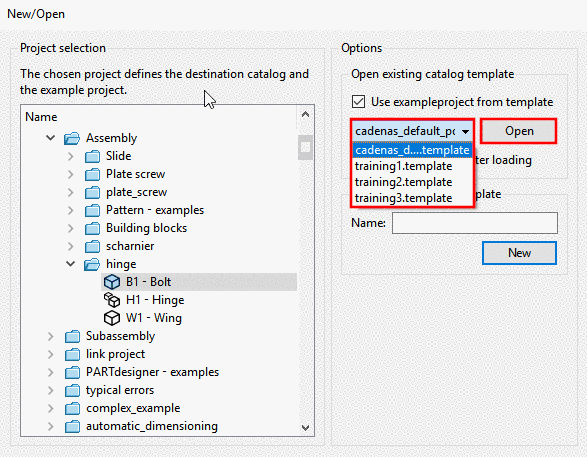 In order to open an already existing template, you have different options: