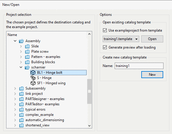 In the directory tree, select the Test project (here in the example "B1 - Bolt").