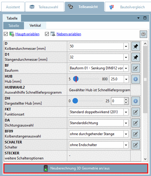 When changing a table value, the 3D view is recalculated. Depending on part size this may take a moment.