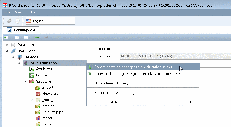 Via context menu command parts/characteristics can be ...