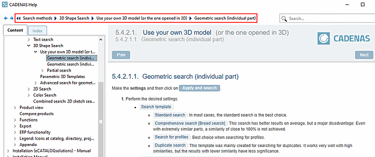 Si vous travaillez principalement avec une application spécifique comme eCATALOGsolutions, vous avez la possibilité de passer à l'utilisation d'une aide locale et de ne charger que le manuel souhaité.