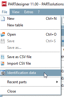 The dialog box can be opened via File menu -> Identification data or via