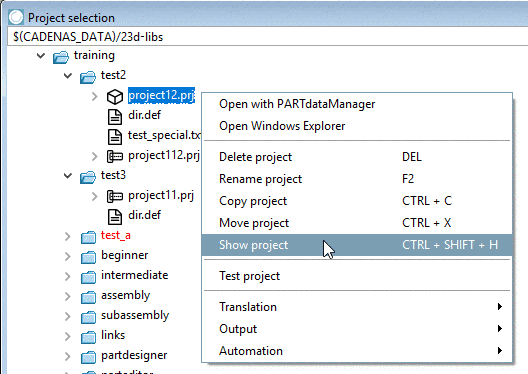 situation: Project "project12.prj" shall be hidden.