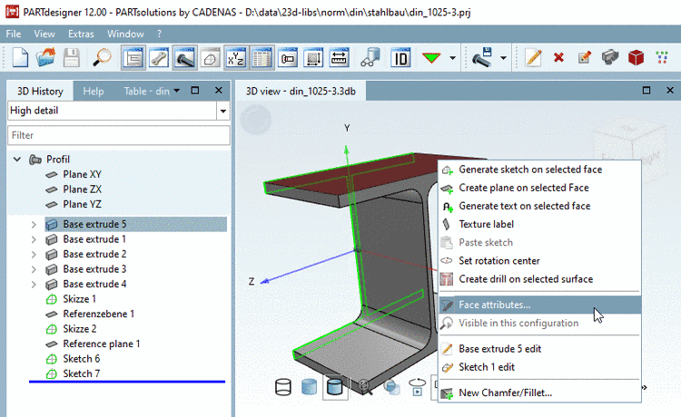 • Call: Select a face (or several with pressed Ctrl key) and click on the context menu command Face attributes....