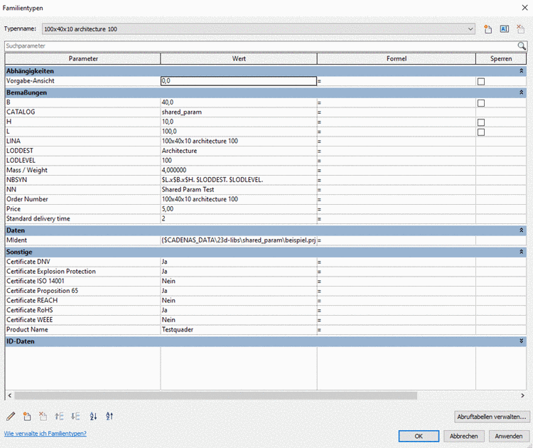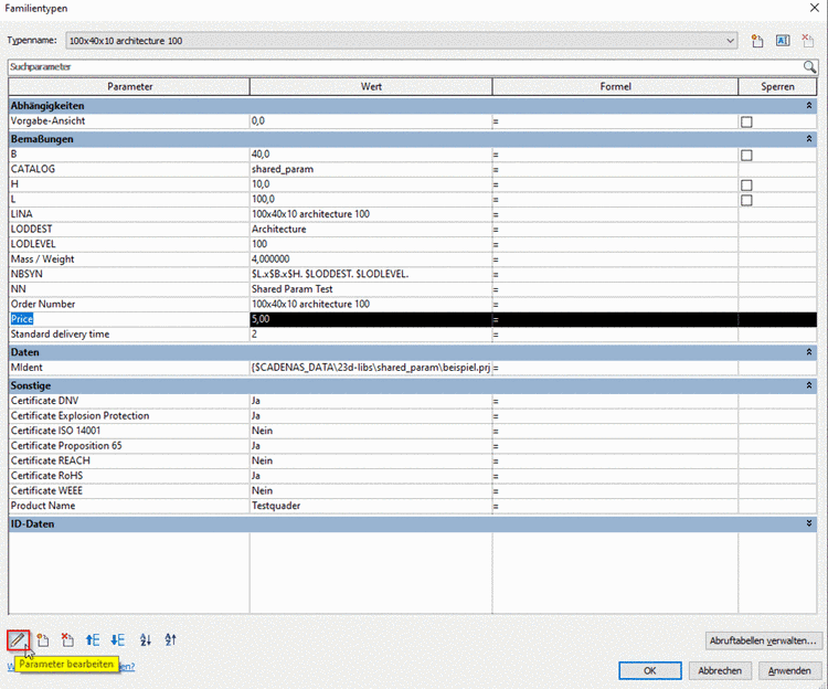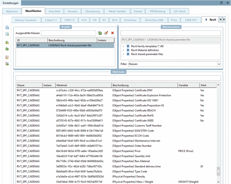 In order for a value to be available in Revit as Shared Parameter, it has to be assigned as attribute of the class CADENAS Revit shared parameter file.