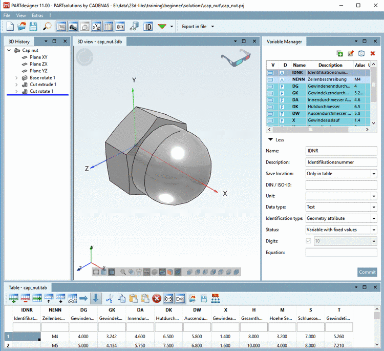 -> Later the geometry of the cap nut will be shown as 3D preview in the Part view of PARTdataManager.