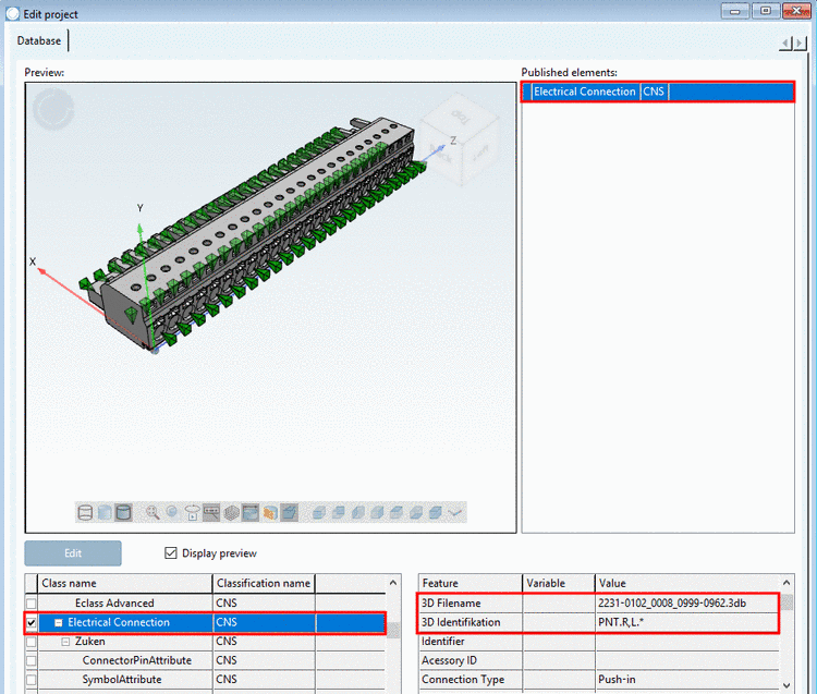 Select the 3db file. Now all available connection points are displayed. In the dialog box Choose connection point all points are displayed as well. Now you can classify single connection points, which does not make sense in this example, because a large number of connection points has to be classified in the same way.