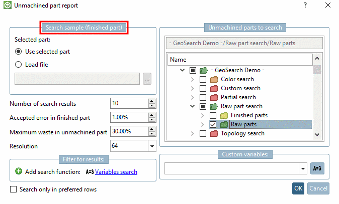 The activation of the preferred rows function also effects the search! The search results are filtered and have to meet the preferred rows condition. Also see Section 3.1.11.2, “ Enhanced search possibilities with ERP integration ” in PARTsolutions - User manual.