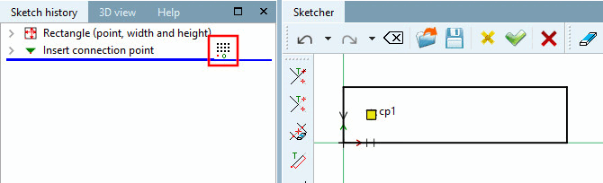 Certaines actions sont directement marquées par une icône dans l' historique de l'esquisse [Sketch history]: