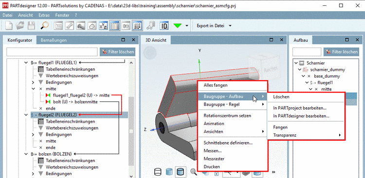 Details on the editing of assemblies can be found under Section 7.13, “Docking window "Configurator" / "Assembly"”.