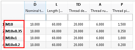 NAME = GETTHREADTEXT(D,'DIN 13','',P,'NAME') // e.g. results in M10x1
