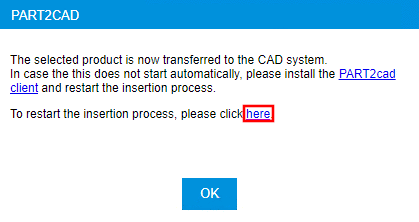 PART2cad (direct integration) simplifies the download of CAD models. They are loaded quickly and directly into the CAD system. Temporarily saving of parts is not necessary.
