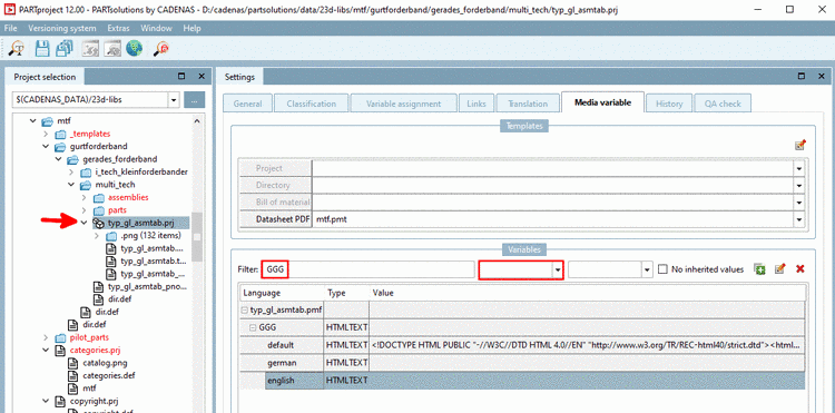 Translation in the Media editor would make sense, if Media Variables had been created for a PDF datasheet, because the Media editor is directly called from the PARTtemplateDesigner. For this see under ???.