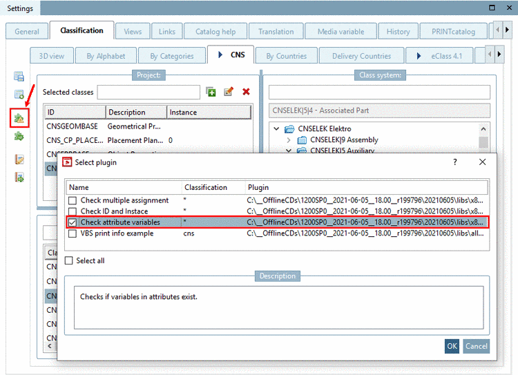 Use case for the plugin "Check attribute variables": When subsequently editing projects and renaming variables (e.g. variable for order number) sometimes someone may forget to adjust the variable mapping of the classification.