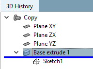 Construction steps (features) which, based on their condition are excluded, will be deactivated in the 3D History and identified by an if symbol (