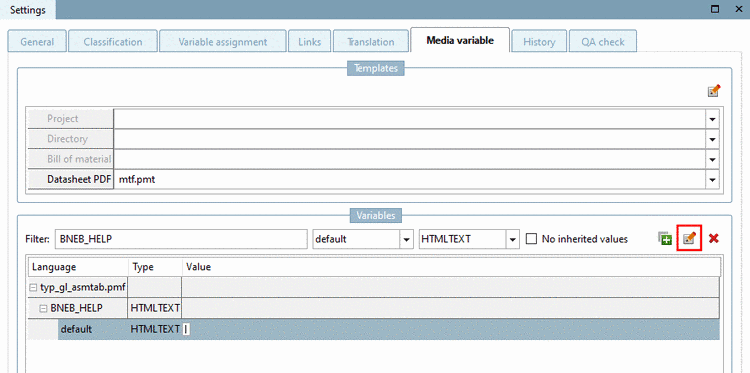The following explains how to create Media Variables in PARTproject. Alternatively they could also be created via PARTtemplateDesigner (see Chapter 10, PARTtemplateDesigner - Create datasheets ).