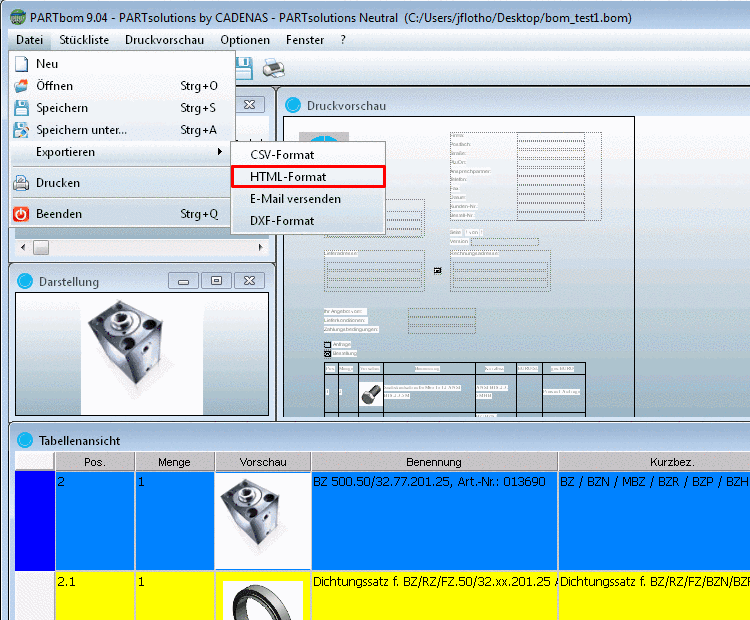 As of PARTsolutions version 9.03 SP1 you can directly export HTML. You do not have to use the "Send e-mail" function anymore.