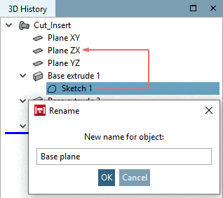 the displayed name of features (sketches, drawings, patterns, drills, etc.)