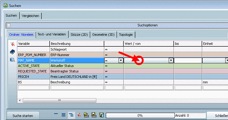 • Any other rows may be added optionally when building the dialog box. In this way values can be selected or entered by free input and then be transferred into the LinkDB.