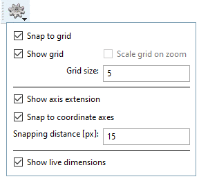 Snap to grid: If, for example, a line is drawn, it is automatically placed on the grid lines. A placing between grid lines can only be achieved with option turned off.