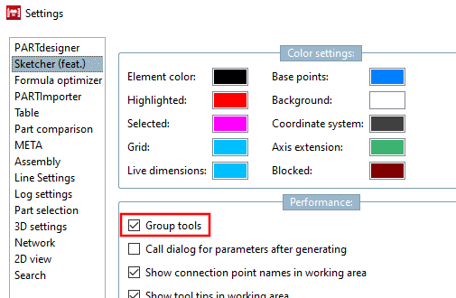 To improve the overview, the individual function buttons are summarized in groups with similar functions. As of V12 on some toolbars only the last used one is displayed, the others can be made visible by clicking on the little black arrow. In PARTdesigner, under Extras menu -> Preferences... -> Sketcher (feat.), there is the function Group tools, so that you can switch back to the old V11 behavior if you like (all buttons visible at once).