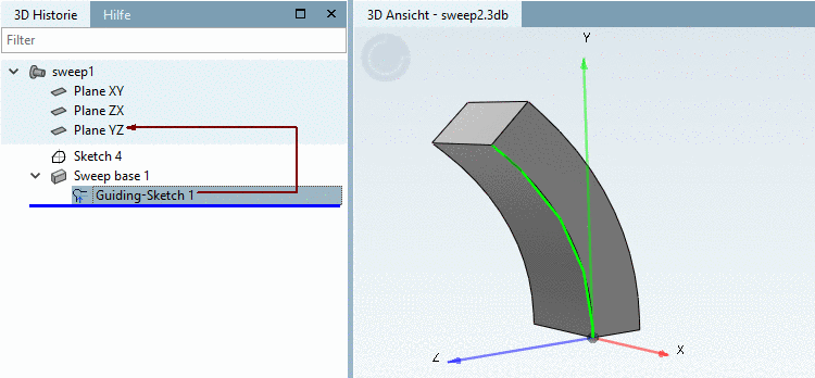 In the context menu of Guiding-Sketch, click on the command Create sweep base.