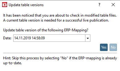 -> The dialog Check ERP-Mapping is opened.