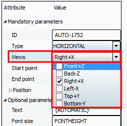 When creating a new dimensioning, initially HORIZONTAL is automatically set. Adjust the selection in the list field, if needed. You can change the type anytime.