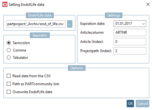 Overwrite EndofLife date: In case that an expiration date has already been set, you can determine whether it shall be overwritten.