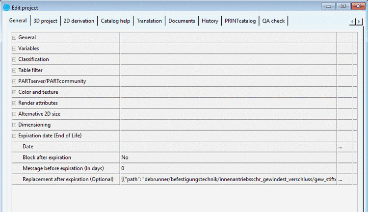 End of Life can also be set on project level. On this please see Section 5.9.2.12, “Menu item Expiration date (End of Life) ”. | |