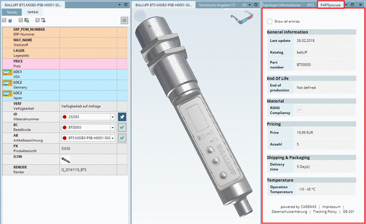 Example: Search for "Cuboid 50". "Cuboid" is found in the table, "50" via topological information (even if there are no table values).