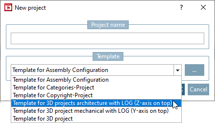When selecting one of these templates, basic variables for LOG controlling are automatically created with respective values. Basically one can say: If you want to provide a model in different levels of detail, you should select one of these templates (target market Architecture or Mechanical engineering).