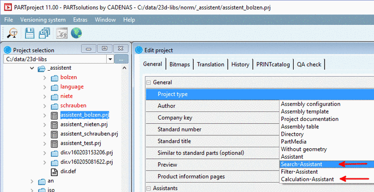 1. In PARTproject, under Edit project, select the tabbed page General, and there under Project type, the selection Search Assistant.