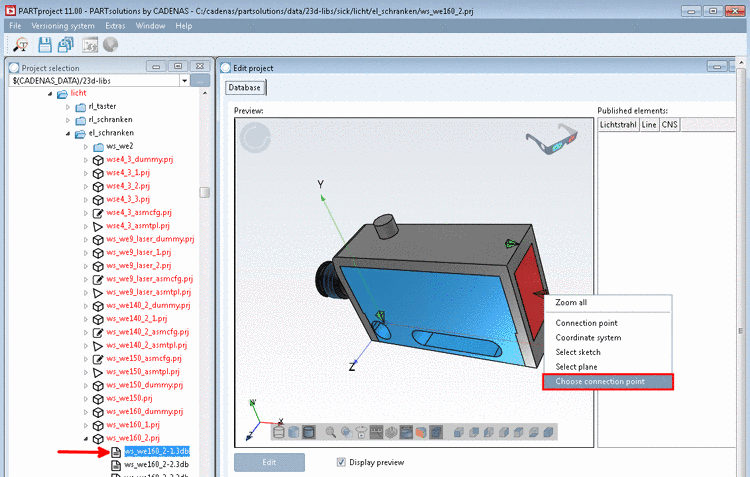 In the Configurator, select the part to be classified in the assembly and open it via context menu command in PARTproject.