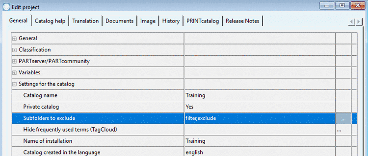 In PARTproject, on catalog level, call up the tabbed page General.
