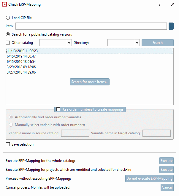 -> When uploading the dialog Check ERP-Mapping is opened.