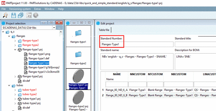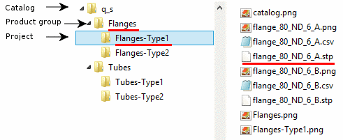 If you use further preview images for product group / product family, then please regard that the name of the PNG file is the same as the level (folder) it shall be used for. In the above example these are the preview images for "Flanges" and "Flanges-Type1".
