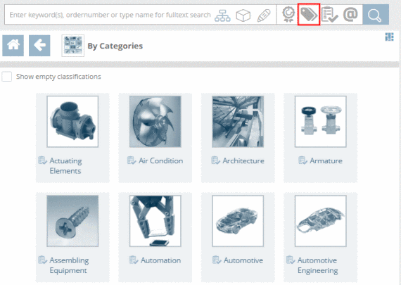 ➝ Only those catalogs are shown, which contain components of the chosen category.