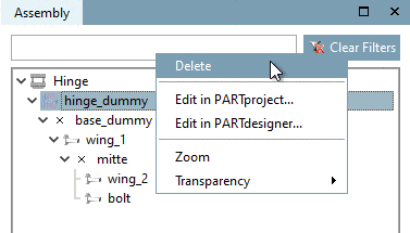 In the docking window Assembly, delete everything except the starter part (here in this example it is a dummy starter part).
