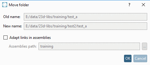 [20] If one assumes that through moving the directory, all other directories (assemblies, whose properties refer to this directory) are affected, set a checkmark at Adapt links in assemblies and enter the Assemblies path (Browse ...). See Section 5.8.2.1.7, “ Rename directory ”.